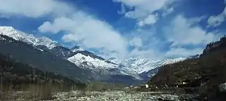 Manali is a town, near Kullu town in Kullu district in the Indian state of Himachal Pradesh.[2] It is situated in the northern end of the Kullu Valley, formed by the Beas River. The town is located in the Kullu district, approximately 270 kilometres (170 mi) north of the state capital of Shimla and 544 kilometres (338 mi) northeast of the national capital of New Delhi. With a population of 8,096 people recorded in the 2011 Indian census Manali is the beginning of an ancient trade route through Lahaul (H.P) and Ladakh, over the Karakoram Pass and onto Yarkand and Hotan in the Tarim Basin of China. Manali is a popular tourist destination in India and serves as the gateway to the Lahaul and Spiti district as well as the city of Leh in Ladakh.[3]