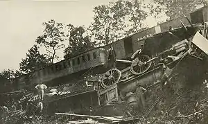 ![]() Train derailed by Confederate cavalry on August 26, 1862, during the Manassas Station Operations. | |||||||