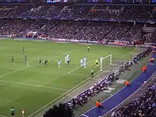Triumph in the 1976 League Cup final gave Manchester City a place in the UEFA Cup after a four-year absence. City drew Juventus in the first round. Drawn at home first, City won the first leg 1–0, Brian Kidd scoring his first goal for the club. The second leg in Turin resulted in a 2–0 defeat and elimination.[32] Juventus went on to win the competition. As league runners-up in the 1976–77 season, City again qualified for the UEFA Cup. Drawn against Widzew Łódź, the Blues drew the first leg at Maine Road 2–2. In the late 1970s, hooliganism was becoming a more prominent part of English football. Following an incident where a fan invaded the pitch and attacked Widzew's Zbigniew Boniek, City were fined by UEFA, and fencing was erected between the pitch and the stands.[33] A 0–0 draw in Łódź resulted in City's elimination on the away goals rule.