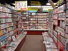 In the following years, manga became increasingly popular, and new publishers entered the field while the established publishers greatly expanded their catalogues.[139] The Pokémon manga Electric Tale of Pikachu issue #1 sold over 1 million copies in the United States, making it the best-selling single comic book in the United States since 1993.[140] By 2008, the U.S. and Canadian manga market generated $175 million in annual sales.[141] Simultaneously, mainstream U.S. media began to discuss manga, with articles in The New York Times, Time magazine, The Wall Street Journal, and Wired magazine.[142] As of 2017, manga distributor Viz Media is the largest publisher of graphic novels and comic books in the United States, with a 23% share of the market.[143] BookScan sales show that manga is one of the fastest-growing areas of the comic book and narrative fiction markets. From January 2019 to May 2019, the manga market grew 16%, compared to the overall comic book market's 5% growth. The NPD Group noted that, compared to other comic book readers, manga readers are younger (76% under 30) and more diverse, including a higher female readership (16% higher than other comic books).[144] As of January 2020, manga is the second largest category in the US comic book and graphic novel market, accounting for 27% of the entire market share.[145] During the COVID-19 pandemic some stores of the American bookseller Barnes & Noble saw up to a 500% increase in sales from graphic novel and manga sales due to the younger generations showing a high interest in the medium.[146] Sales of print manga titles in the U.S. increased by 3.6 million units in the first quarter of 2021 compared to the same period in 2020.[147] In 2021, 24.4 million units of manga were sold in the United States. This is an increase of about 15 million (160%) more sales than in 2020.[148][149] In 2022, most of the top-selling comic creators in the United States were mangaka.[150] The same year manga sales saw an increase of 9%.[151]