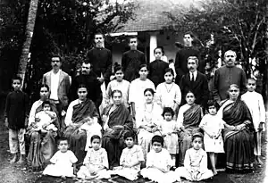 The biggest group were the Bamonns, who were converts from the priestly Brahmin class.[29] All Brahmin sub-castes such as the Goud Saraswat Brahmins, Padyes, and Daivadnyas, especially the goldsmiths and a few merchants, were lumped into the Christian caste of Bamonn.[207] The descendants of Goud Saraswat converts comprised the majority of this caste.[29] The Bamonns were further divided into other castes according to rank. In Mangalore, they were sub-divided into Sirudhegars (the highest class), Alhdhengars, Cutdhnangars, Dhivodegars, Nathnolegars, Sashragars, Puruvargars, and Maidhegars. These names are taken from the villages to which they once belonged.[208] This group constituted the landed gentry. In accordance with traditional Hindu law that allowed a Brahmin to practice any occupation except cultivation, the Bamonns refrained from cultivating their lands, and leased them to tenants.[209]