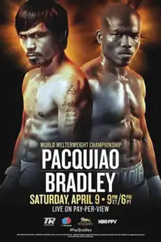 Manny Pacquiao vs. Timothy Bradley III, was a professional boxing match for the vacant lineal world championship and WBO International welterweight title. It was held on the 9th of April 2016 at the MGM Grand Garden Arena in Las Vegas. The bout was on HBO PPV,[1] according to Pacquiao, it was his last fight as a professional.[2] The winner of the bout would also be awarded a Special WBO commemorative title belt, which was billed to be a "Legacy Belt".[3]