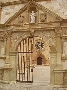 That same year (1156), Manrique was entrusted with the tenencia of Burgo de Osma, which he subinfeudated to his vassal Diego Pérez as alcalde.[33] Manrique was also governing the Mediterranean port city of Almería (near Alcolea) in January 1157. Later that year both Almería and Baeza were lost to the Almohads.[34] In August that year, Alfonso VII died. According to the De rebus Hispaniae, written by a Navarrese cleric, Rodrigo Jiménez de Rada, a century later, the division of Alfonso VII's empire between his heirs was a result of the evil counsel of Manrique Pérez de Lara and Fernando Pérez de Traba, who together "aimed to sow the seed of discord".[35] Alfonso's elder son, Sancho, succeeded in Castile and Toledo, while his second son, Ferdinand II, succeeded in León and Galicia. Sancho died on 31 August 1158 and Manrique became regent and guardian of the child king Alfonso VIII. At least one later account with a pro-Leonese bias, the Chronicon mundi of Lucas de Tuy, asserts that Ferdinand II became regent and protector of Alfonso VIII, but this is a fabrication.[36]