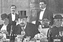 In 1896 together with other Carlist deputies and senators Solferino withdrew from the Cortes;[73] denying allegations that like in 1872, the act was introduction to Carlist insurgency, he nevertheless signed a letter lambasting the turnista system as corrupted and unsustainable.[74] The same year he took part in ambiguous gatherings hailing general Moore[75] and in 1898 he presented Carlos VII with an enigmatic gift.[76] His actual involvement in La Octubrada, a series of minor Catalan Carlist 1900 revolts,[77] is highly unclear.[78] Though scholars do not list him among those involved[79] and at the time of the disturbances he was together with other Carlist leaders in Paris,[80] contemporary press noted that Badalona raid originated from Torre Baró estate of his brother-in-law Sivatte.[81] Security forces searched his Barcelona palace tearing off the floor and allegedly discovered few rifles.[82] Solferino denied any involvement,[83] which did not spare him brief detention in 1901.[84]