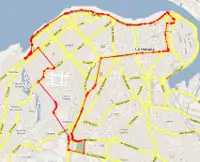 Course of the Half Marathon. The sense is counter-clockwise. Larger version of the map here File:Marabana Marathon Course Map.png