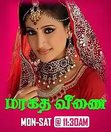 Maragatha Veenai is a 2014 Indian Tamil-language soap opera that aired on Sun TV. The show ran from 27 January 2012 to 1 December 2017 and aired Monday through Saturday for 1102 episodes.[1][2][3] The show starred Santhoshi, Kumar, Sangeetha, Raja, Manokaran, Deepa and among others. This show was produced by Cine Time Entertainment and directed by L.Muthukumaraswamy, P.Selvam, O.N Rathnam and Vasubharthi Shivashankaran for 1102episodes. It also airs in Sri Lanka Tamil Channel on Shakthi TV.