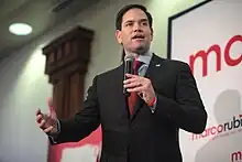 The 2016 presidential campaign of Marco Rubio, who is currently the senior United States senator from Florida, was formally announced on April 13, 2015, at an event at the Freedom Tower in Downtown Miami.[3] Early polling showed Rubio, who was considered a potential candidate for Vice President by Republican presidential nominee Mitt Romney in 2012, as a frontrunner candidate for the Republican nomination for president of the United States in 2016 since at least the end of the 2012 election.[4] Rubio was the second Cuban American to run for president of the United States, with Republican Ted Cruz announcing his campaign three weeks earlier. He suspended his campaign on March 15, 2016, after finishing second in Florida's primary.[5]