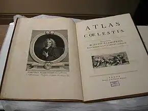 Photo of a copy of Atlas Coelestis owned by the Derby Museum and Art Gallery