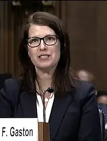 On December 21, 2022, President Joe Biden announced his intent to nominate Gaston to serve as a United States district judge of the United States District Court for the Southern District of California. Gaston was recommended by Senator Alex Padilla.[10] On January 23, 2023, her nomination was sent to the Senate. President Biden nominated Gaston to the seat vacated by Judge William Q. Hayes, who assumed senior status on August 1, 2021.[11] On February 15, 2023, a hearing on her nomination was held before the Senate Judiciary Committee.[12] A former public defender, Gaston was accused of having a pro-criminal and anti public safety bias who would reflexively favor criminal defendants. A paper she co-authored in 2007 expressed the opinion that registered sex offenders should not be subject to residency restrictions and should be allowed to live near churches, schools, and day care centers.[13] Senator Alex Padilla and other Democrats accused Gaston's critics of misconstruing Gaston's record.[10] On May 11, 2023, her nomination was reported out of committee by a party line 11–10 vote.[14][10] On January 3, 2024, her nomination was returned to the president under Rule XXXI, Paragraph 6 of the United States Senate.[15] On January 10, 2024, Gaston decided to withdraw her name from consideration as a federal judge.