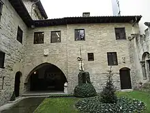 In 1973 and for reasons which are not clear Zufía did not seek prolongation of his term in the city council;[71] as a result, it expired in 1974.[72] However, the same year he stood in elections to Consejo Foral, a peculiar provincial Navarrese advisory body with rather limited powers; he was comfortably elected.[73] During final years of Francoism Zufía and his sons[74] were heavily engaged in numerous semi-clandestine activities, e.g. since 1974 in his house he hosted the editorial board of a bulletin titled Denok batean and provided residence to its chief editor.[75] In establishment circles he was viewed as a dangerous subversive; in spite of earlier arrangements he was not promoted to director of the Banco de Bilbao Pamplonese branch.[76] His relations with the bank were already loose; in the early 1970s he was on unpaid leave, which enabled him to take a job restructuring financial structures of the Pamplona diocese.[77] Eventually, in late 1975 he arranged for premature retirement from the bank and despite poor conditions offered, he did retire the following year.[78]