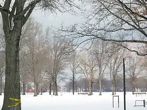 The park's playground, several sports fields, and 0.83 mile-long running path were all built on the ancient Keshawchqueren burial ground.[6] Part of the park, including the fields north of Avenue U, were built atop Gerritsen Creek.[5]: 213