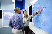 Obama being shown map of the U.S. Pacific marine national monuments at Midway Atoll National Wildlife Refuge, Aug. 31, 2016