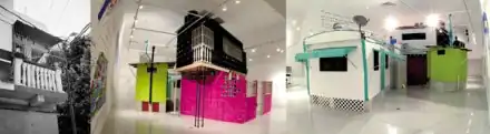 For example, Hybrid House: Caracas, West Bank, West Palm Beach (Palm Beach Institute of Contemporary Art, Lake Worth, Florida, 2003), illustrates how three very different 21st-century communities — a Caracas barrio, a Jewish settlement on the West Bank, and a temporary housing community in West Palm Beach, Florida — negotiate issues of space, security, energy, water, and communications in contested environments.[14]