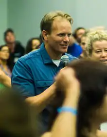 ![]() Macdonald walks through the crowd as he speaks at IDEA world, 2014 | |