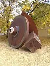 In 1955, Oliphant initiated the design and construction of a 500 megajoule homopolar generator (HPG), the world's largest. This massive machine contained three discs 3.5 metres (11 ft) in diameter and weighing 38 tonnes (37 long tons). He obtained £40,000 (equivalent to A$2,000,000 in 2022) initial funding from the Australian Atomic Energy Commission.[82] Completed in 1963, the HPG was intended to be the power source for a synchrotron, but this was not built.[83] Instead, it was used to power the LT-4 Tokamak and a large-scale railgun that was used as a scientific instrument for experiments with plasma physics. It was decommissioned in 1985.[23]