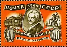 1960 stamp marking the 125th birthday of "Mark Tven"