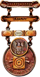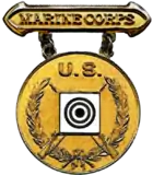 In the United States (U.S.), a marksmanship badge is a U.S. military badge or a civilian badge which is awarded to personnel upon successful completion of a weapons qualification course (known as marksmanship qualification badges) or high achievement in an official marksmanship competition (known as marksmanship competition badges). The U.S. Army and the U.S. Marine Corps are the only military services that award marksmanship qualification badges. However, marksmanship medals and/or marksmanship ribbons are awarded by the U.S. Navy, U.S. Coast Guard, and U.S. Air Force for weapons qualifications. For non-military personnel, different U.S. law enforcement organizations and the National Rifle Association (NRA) award marksmanship qualification badges to those involved in law enforcement. Additionally, the Civilian Marksmanship Program (CMP) and the NRA award marksmanship qualification badges to U.S. civilians. Most of these organizations and the U.S. National Guard award marksmanship competition badges to the people they support who succeed in official competitions.[1][2][3][4][5][6][7][8][9][10][11][12][13][14][15]