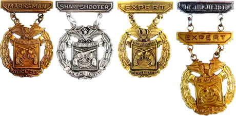Each U.S. law enforcement organization, such as the Los Angeles Police Department (LAPD), New York City Police Department (NYPD), have established various law enforcement marksmanship qualification badges for their officers to highlight their proficiency with their service firearms and encourage their peers to strive for excellence with their sidearm.[8][9]