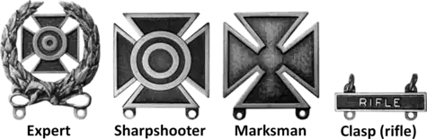 - 1 2 3 Emerson, William K. "U.S. Army Weapons Qualification Badges and Certificates, 1880–1921" (PDF). Archived from the original (PDF) on 2020-02-10. U.S. Army Insignia, last accessed 29 December 2014