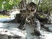 The Huge Kaani (Sea Trumpet) Tree in Maroshi is noted in history for various reasons. It is a living tribute to Sultan Mohamed Thakurufaanu who freed the country from the reign of the Portuguese. It is also the largest tree of its kind in the country, and probably the oldest as well. It is said that Mohamed Thakurufaanu received a lot of help from the renowned Maroshi Raaveribe ( toddy-tapper) in his fight for national independence. It was his job to mend and maintain the sail of the Kalhuoffunmi - the ship used in the 'battle' and supply water to the vessel every time it docked at Maroshi, which was an important port during this fight. This tree still growing in the island is the one that grew from the Kaani staff that Raaveribe hoisted some 400 years ago to keep the huge sails of Kalhuoffunmi. Although some of the gigantic branches of the tree show signs of being attacked by 'giant saws', this is a historical monument that has been preserved over time. Also, signs of the passage through which the vessel went in and out of the kulhi (a lake-like enclosure of water) in the island is still quite obvious.