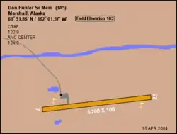 Marshall Don Hunter Sr. Airport (IATA: MLL[1], ICAO: PADM, FAA LID: MDM, formerly 3A5) is a state-owned public-use airport located two nautical miles (3.7 km) southeast of the central business district of Marshall, a city in the Kusilvak Census Area of the U.S. state of Alaska.[2]
