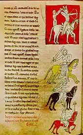 Martín's known pious endowments are limited. He made a grant to the Benedictine monasteries of Sahagún in March 1091, and also to the regular clergy of Valladolid in February 1092.[1] He was not always on good terms with Sahagún: in 1091 he had to defend the settlers of Villavicencio in their dispute with Sahagún. At an unknown date when his son Rodrigo was young, he made a donation of a meadow, some money and candles to the Benedictine house of Santa Eugenia de Cordovilla, whose monks, he claimed, had exorcised a demon from his son. On 22 September 1102 Martín granted some land at Torredillos to the townsmen that they might build a church.[1]