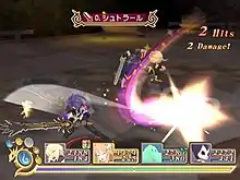 Tales of Symphonia: Dawn of the New World uses the "Flex Range Element Enhanced Linear Motion Battle System" (FR:EE-LiMBS), combining aspects of Tales of the Abyss' and Tales of Destiny's battle systems, to create a battle experience comparable to Tales of Innocence's Dimension Stride Linear Motion Battle System. A key feature of this enhanced system is the Elemental Grid.[6] Each battle location, skill, and monster has an elemental attribute.[7] The battlefield's element can be altered by using three skills with the same elemental attribute.[7] Changing the element of the field determines both the effectiveness of an attack, as well as the characters that can participate in Unison Attacks, which return from the original Symphonia. A meter on the lower part of the screen indicates when the attack can be unleashed.[7] Another returning element of the series are Mystic Artes.[8]