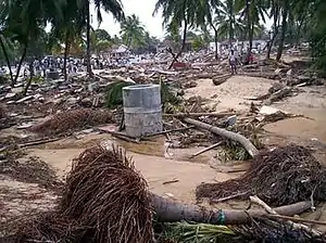 Maruthamunai was one of the villages most severely affected in Sri Lanka by the Indian Ocean tsunami on 26 December 2004. The disaster killed 922 residents of the village, displaced 11,086, 1,391 houses were completely destroyed and 1,359 were partially damaged. Previous to the disaster the population of the village was officially 17,393. In addition to over 1,300 homes, many public buildings were destroyed by the tsunami.[1]