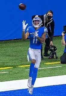 - ↑ Monarrez, Carlos (October 20, 2019). "Detroit Lions' Marvin Jones makes history, dazzles with 4 TD catches in loss". Detroit Free Press. Archived from the original on October 21, 2019. Retrieved October 20, 2019.