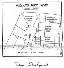 Further work was undertaken by the parish during that period including the purchase of a presbytery, building of classrooms beneath the church and the building of a convent for the Sisters of the Sacred Heart.