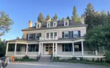Located at 815 W. Seventh Ave., the Austin Corbin house is a Colonial Revival home built in 1898 and designed by Kirtland Cutter. It was built as a 17-room mansion for Austin Corbin, son of Daniel Corbin, and his wife. The younger Corbin worked in his father's business as vice president of the family's three railroad lines, a sugar company, and irrigation ventures. The two Corbins' homes were built at the same time, designed by the same architect, and just a block apart, but the younger Corbin's home was designed to be far more imposing from the exterior. Located on a seven-acre lot overlooking the city, the northern façade features a two-story portico at the central entrance with six Ionic columns supporting the pediment.[2]