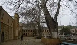 The historian Jere L. Bacharach speculates that Maslama was the most likely founder of the Umayyad Mosque of Aleppo, whose original construction is otherwise attributed to al-Walid I or Sulayman. Most of the present structure dates to the 12th–13th centuries. Bacharach bases his view on Maslama's governorship of Qinnasrin and his possible use of Aleppo as a base for the sawa'if, for which a congregational mosque to serve the troops would have made sense.[11] The Umayyad-era qasr (castle) in Balis, a fortified residence with a canal and a wool production center, was possibly a construction by Maslama or Sa'id al-Khayr.[80] Maslama may have been responsible for some construction works in the town of Qinnasrin.[11] In Damascus, he had an iwan (enclosed hall) called after him alongside the residences of other Umayyad dynasts, including the caliphal Khadra Palace, situated behind the Umayyad Mosque.[81][82]