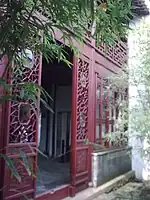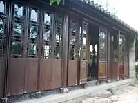 Named from a verse by Chu Ci in The Fishermen, "If the water of Canglang River is clean I wash my ribbon, if the water of the Canglang River is dirty I wash my feet".[1] It is a three-bay terrace with a hipped gable roofline and flying eves. The doors are decorated with carvings that depict scenes from the Romance of the Three Kingdoms. |