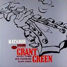 Matador is an album by American jazz guitarist Grant Green.[1] It contains performances recorded in 1964 but not released on the Japanese Blue Note label until 1979.[2] It features Green with pianist McCoy Tyner and drummer Elvin Jones (both from John Coltrane’s group), and bassist Bob Cranshaw. The album was finally reissued in the U.S. on CD in 1990 with one bonus track. It was also reissued on vinyl in 2010, with a different cover.