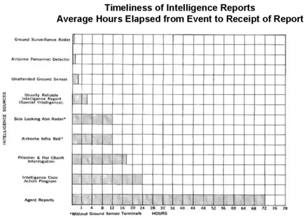 A Vietnam-era sensor, the XM2, generally known as the "people sniffer", detected ammonia concentrations in air, which indicated the presence of groups of people or animals. While it was sensitive, but not selective for people, many water buffalo became targets. Nevertheless, it was considered the best sensor used by the 9th Infantry Division, because, as opposed to other MASINT and SIGINT sensors, it could give helicopter-borne troops real-time detection of targets [18] As seen in the attached chart, it is compared, in terms of timeliness, to a number of other sensors.[18]