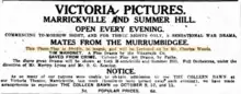 - ↑ "THE VICTORIA". The Daily Telegraph. No. 10081. New South Wales, Australia. 18 September 1911. p. 3. Retrieved 30 November 2023 – via National Library of Australia.