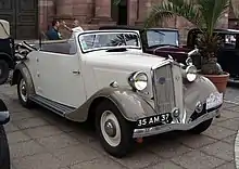 Having spent the war in United States, Mathis was not well connected with the post-Vichy political class. After the war the company was not one of the automakers included in the Pons Plan.[2] The Pons Plan reflected government determination to structure the French auto-industry according to priorities identified by politicians and civil servants: exclusion from it created great difficulties in obtaining necessary permissions and materials. Nevertheless, Mathis tried to find new projects: these included the "flattened egg-shaped" 700 cc three-wheeler (Mathis VL333) first exhibited in 1945. When this failed to find favour with the authorities he switched tack, producing a front-wheel drive prototype with a flat-six (2.8 L) engine, and an eyecatching "panoramic" style windscreen. These post-war projects failed, and the factory was only kept going by making engines for light aircraft and components for Renault. The Mathis company closed in 1950.