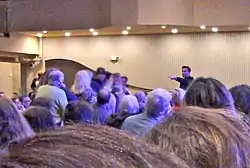 The New York Times reporter Jack Hitt was embedded with a team of skeptics to observe what was called "Operation Peach Pit", a sting following a procedure similar to one previously used against Thomas John. In this case, the target was Fraser. According to Hitt, Fraser "resembles Tom Cruise in the role of an oversharing altar boy. He has been on the circuit for years, has a book under his belt, and works some Doubletree or Crowne Plaza back room every two or three days".[5] Kenny Biddle and a group of five friends, using aliases matching the faked Facebook accounts, attended Fraser's show at the Valley Forge Casino in King of Prussia for the sting.[6][5] As Biddle reported in Skeptical Inquirer, none of the team members were selected for a reading.[6]