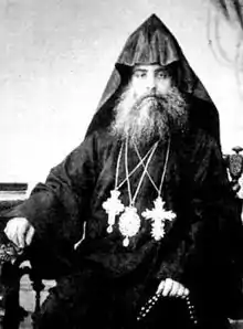 Because of his activism, in 1896 the Ottoman authorities dethroned him as Armenian Patriarch of Constantinople and exiled him to Jerusalem.[1] He returned briefly from exile in 1908 after the Committee of Union and Progress declared the restoration of the constitution in 1908 and was reelected as Patriarch of Constantinople for a few months. After the death of Catholicos Khrimian, Izmirlian was elected as Catholicos of All Armenians as Matthew II and left for Etchmiadzin for his consecration. He held the post of Catholicos of All Armenians for three years before he died. During his tenure, he became the first Catholicos to make a pilgrimage to Ani, the ruined capital of medieval Armenia.[2]