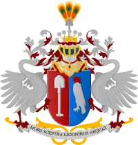Matthias Laurenz Gräff and Karl von Habsburg - head of the Habsburg-Lorraine family, the former Roman-German and Austrian imperial families - in front of Graeff's coat of arms[3] (2022)