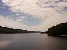 The Mauch Chunk Lake was originally built by a dam designed by the United States Army Corps of Engineers in early 1972. Constructed as a 50-foot-high earthen dam 1,710 feet long and holds a 320-acre reservoir. It was officially opened in the summer of 1974, at a cost of 3 million dollars, which would be 18 million in today's money. It was commissioners Agnes T McCartney and Rep. Daniel Flood who oversaw the venture. Before this manmade lake was opened, the water that ran from the natural springs fed atop the Mauch Chunk Mountain was cause for alarm for the Mauch Chunk Creek. There were a number of floods throughout the years flooding upper and lower Broadway (the main street in Jim Thorpe). Some of the worst floods occurred in 1861, 1901, 1902, and in 1969. One of the first tests of this dam was put to the test with Hurricane Agnes in 1972, as the dam held and many of the towns near that area got up to 18 inches of rain.[1][2]