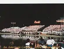 In 1999 Yeston was commissioned by the Kennedy Center to write and orchestrate a three-movement orchestral work for the millennium celebration, An American Cantata: 2000 Voices,[33] which was performed by the National Symphony Orchestra under the baton of Leonard Slatkin at the Lincoln Memorial in July 2000, with a chorus of 2000 voices and tenor soloist Norm Lewis. Yeston used "2000 voices as a celebration of the year the piece was created ... chosen from 108 local ensembles."[34]