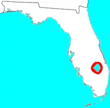 The Mayaimi (also Maymi, Maimi) were Native American people who lived around Lake Mayaimi (now Lake Okeechobee) in the Belle Glade area of Florida from the beginning of the Common Era until the 17th or 18th century. In the languages of the Mayaimi, Calusa, and Tequesta tribes, Mayaimi meant "big water." The origin of the language has not been determined, as the meanings of only ten words were recorded before extinction.[1] The linguist Julian Granberry states that the language of the Calusa, Mayaimi (which he calls Guacata) and Tequesta people is related to the Tunica language.[2] The current name, Okeechobee, is derived from the Hitchiti word meaning "big water".[3] The Mayaimis have no linguistic or cultural relationship with the Miami people of the Great Lakes region.[1] The city of Miami is named after the Miami River, which derived its name from Lake Mayaimi.[3]