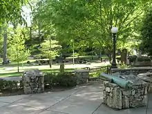 By the 1920s, the park "had become central to Greenville life," and it was the site of numerous Sunday school and cotton mill picnics, concerts, dances, and family reunions.[4] From 1935 to 1941, it was renovated by the Works Progress Administration; and in 1941, Sears, Roebuck and Company donated $7,500 toward the building of a stone shelter.[5] That same year, Greenville City Council renamed the park for city engineer John Alexander McPherson (1879-1961) in recognition of his service in developing the city's parks.[6]