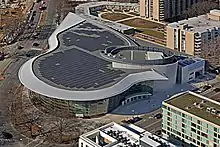 In 1960, the company moved into its current complex on Sixth Street, which was designed for them by Chicago architect Harry Weese.[9] He also designed the Arena's Kreeger Theater, which opened in 1970.[2] In 1966, Robert Alexander joined the company and created the Living Stage as a social outreach improvisational theater.[4] From 2008 to 2010, the complex was renovated and a third theatre was added, together with a variety of support spaces. The new complex, with the theatres under a glass skin, was named as the Mead Center for American Theater. Its outdoor terrace overlooks the Southwest Waterfront.