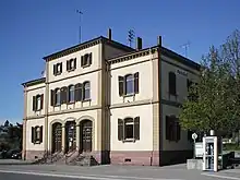 The Krebsbach Valley Railway branched off from Neckarbischofsheim Nord station to Hüffenhardt. This station is not, however, even in the district of Neckarbischofsheim, but three km away in the district of Bernau in the neighbouring town of Waibstadt.