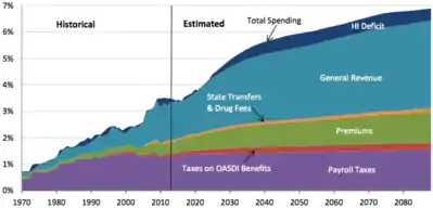 - ↑ "2016 ANNUAL REPORT OF THE BOARDS OF TRUSTEES OF THE FEDERAL HOSPITAL INSURANCE AND FEDERAL SUPPLEMENTARY MEDICAL INSURANCE TRUST FUNDS" (PDF). cms.gov.
