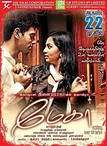 Megha is a 2014 Indian Tamil language romantic thriller film written and directed by Karthik Rishi, a former associate of Subramaniam Siva.[1] Jointly produced by Albert James and S. Selvakumar, the film stars Ashwin Kakumanu, Srushti Dange and Angana Roy, while Jayaprakash, Ravi Prakash, Aadukalam Naren, Meera Krishnan, and Nithya make up the supporting cast.[2] The film's soundtrack and background score were composed by Ilaiyaraaja. The film released on 29 August 2014.[3] This film was a success at the box office with songs of the film being praised.