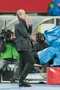 On 13 December 2014, Baždarević was named head coach of the Bosnia and Herzegovina national team, beating Milovan Rajevac for the position.[18][19] Among other candidates were Vahid Halilhodžić,[20][21][22] Igor Štimac,[23] and Felix Magath.[24] He replaced Safet Sušić, who was sacked by N/FSBiH due to a run of poor results in the UEFA Euro 2016 qualifying having only taken two points in four matches.[25] Bosnia and Herzegovina improved considerably under Baždarević and reached the play-off stage for Euro 2016, where they were unfortunately eliminated by the Republic of Ireland with a 3–1 aggregate score. In the aftermath, Miroslav "Ćiro" Blažević, former national team head coach and successful manager, blamed Baždarević for Bosnia's elimination against the Republic of Ireland.[26]