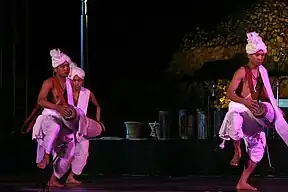 Meitei Sankirtan (Meitei: Meitei Nat Sankirtan), also known as Meitei Sankirtana (Meitei: Meitei Nat Sankirtana) or Manipuri Sankirtan (Meitei: Nat Sonkirton) or Manipuri Sankirtana (Meitei: Nat Sonkirton), is a Meitei cultural form of performing art involving ritual singing, drumming and dancing performed in the temples and domestic spaces in Manipur in India. Through the performances which exhibit unparalleled religious devotion and energy, the performers narrate the many stories of Krishna often moving the spectators to tears.[1] It is practiced primarily by the Meitei Hindus (primarily Vaishnavas) in Manipur and by the Vaishnava Manipuri population settled in the neighbouring States of Tripura and Assam. "Sankirtana: Ritual singing, drumming and dancing of Manipur" was inscribed on the Representative List of the UNESCO Intangible Cultural Heritage of Humanity during the eighth session of the UNESCO Intergovernmental Committee meeting in Baku, Azerbaijan, held in December 2013.[2]